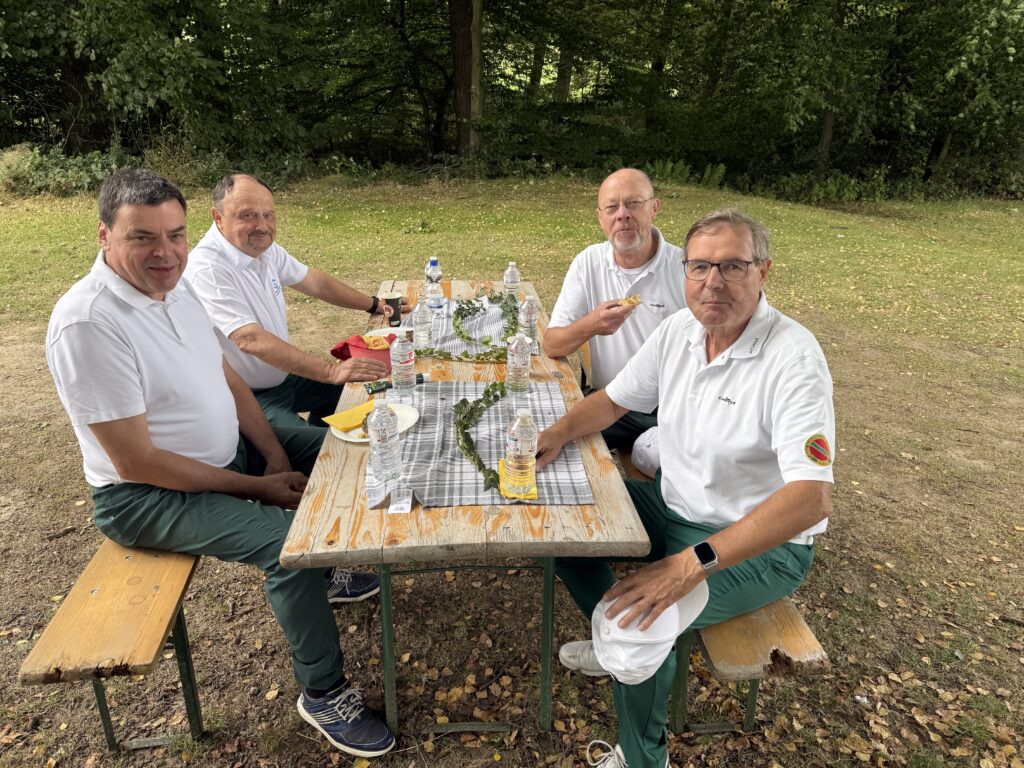 Bei bestem Wetter konnte man sich mit dem Frühstück auf der Terrasse auf einen herrlichen Golftag einstimmen. Von Starterinnen eingewiesen wurde von Blau gespielt, was dem als schwierig berüchtigten Platz die Schärfe nahm und sehr gute Ergebnisse versprach. Wer allerdings am Halfway House den Versuchungen von Frikadellen und verschiedenen Kuchen der Damen erlag und sich den Bauch zu vollschlug, musste danach mit verminderter Performance rechnen.
