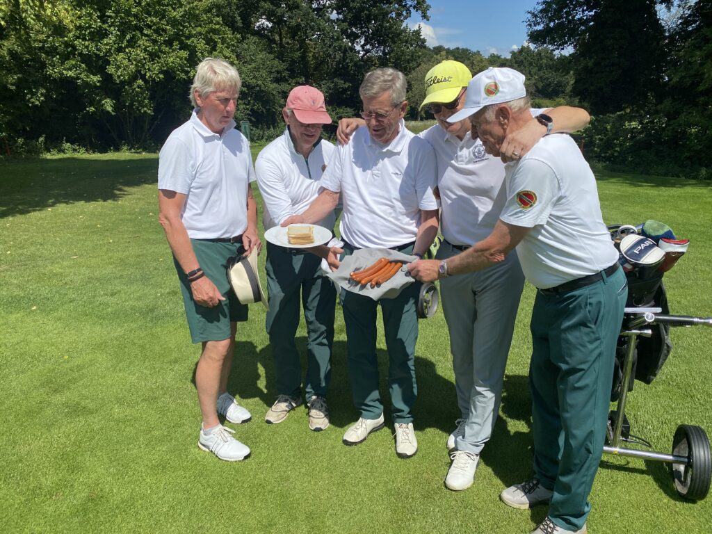 Vor der Runde galt es, eine Spitztüte Süßes an der Candy-Bar zu füllen und eigene Trinkflaschen an den Wasserspendern zu füllen. Gestartet wurden die 72 Senioren in 18 Flights von den Abschlägen 1 und 11 an den im vergangenen Jahr eigens angefertigten und eingeführten GSG Abschlagsmarkierungen, die ein wenig auf Seniorenlänge „gesteckt“ waren. An der Halfway-Station bedienten sich die Spieler an schmackhaft belegten Broten, Wiener Würstchen sowie Kaffee mit Rhabarber- und Apfelkuchen.