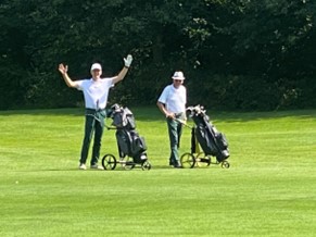 Die Teilnehmer des Wilkingheger Doppelvierers staunten nicht schlecht als es hieß: „Heute und morgen Abschlag von GSG-Grün“. Weiße, gelbe, rote und blaue Abschläge sind „ausgewachsenen“ Golfern in der Regel geläufig. GSG-Grün, mit eigens hergestellten Abschlagmarkierungen, war für alle Teilnehmer allerdings ein Novum (nicht zu verwechseln mit den grünen DGV-Jugendabschlägen).