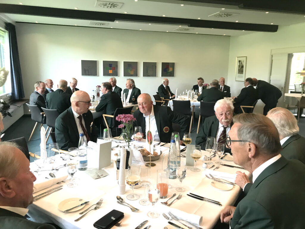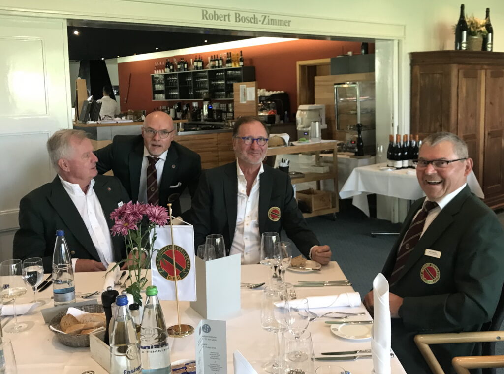 Beim gemeinsamen Abendessen nutzte der langjährige Stuttgarter Kapitän Lothar Seeburger die Siegerehrung, um Dr. Ulrich Kraft als designierten Nachfolger vorzustellen. Danach würdigte Ingo Mack – GSG-Vizepräsident und Nestor der Stuttgarter GSG-Gruppe – Richard Laible vom GC Schloss Liebenstein für 15 Jahre Mitgliedschaft, davon bislang 12 Jahre als Regionalkapitän Südwest. In seiner kleinen Ansprache erinnerte Richard Laible an das GSG- Leitmotiv „Golf und Geselligkeit“ und betonte den freundschaftlichen Umgang miteinander, den er in der GSG kennen und schätzen gelernt habe – auf wie nach der Runde.