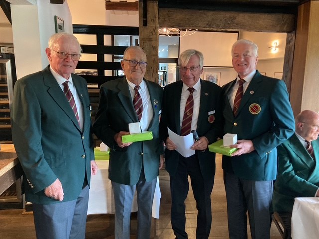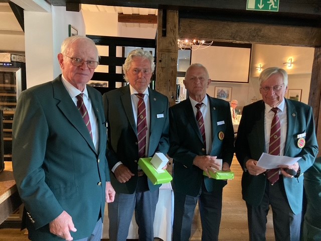 Im Anschluss versammelten sich die Teilnehmer zu einem geselligen Umtrunk, bei dem rege über Spielverläufe und Highlights des Tages diskutiert wurde. Zur offiziellen Begrüßung sprach Kapitän Dr. Helmut Deitermann allen Gästen seinen Dank aus, insbesondere Valentin Jug als langjährigen Regionalkapitän. Das gemeinsame Abendessen rundete den Tag ab. Serviert wurden wie gewohnt die beliebten Kartoffelpuffer mit Lachs – eine weitere liebgewonnene Tradition. Bei der Siegerehrung durch den Kapitän und Recklinghausens Präsidenten sowie GSG-ler Carl Kuhmann wurde schnell deutlich, dass die heimischen Spieler auch dank ihrer Ortskenntnis eine Vielzahl der vorderen Preise abräumen konnten. Zum Abschluss bedankte sich der Kapitän herzlich bei allen, die zum Gelingen des GSG-Turniertages beigetragen hatten.
